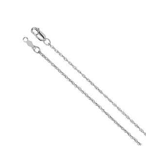 1.25mm Rhodium Sterling Silver Solid Loose Rope Chain Necklace - Black Bow Jewelry Company