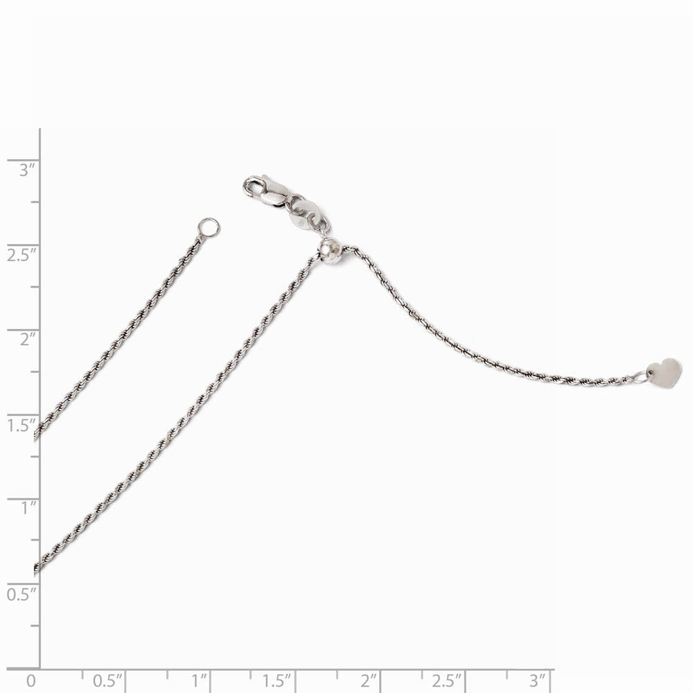 1.2mm 14k White Gold Adjustable D/C Rope Chain Necklace, 22 Inch - Black Bow Jewelry Company