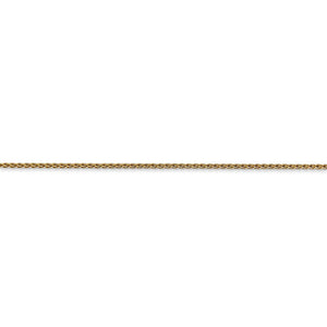 This beautiful chain intricately woven from 14k yellow gold features a solid link, Parisian wheat pattern with a smooth polished finish. Crafted in the USA, this 1.2mm width chain comes complete with a lobster-claw clasp for a reliable fit. 9 inches in length.