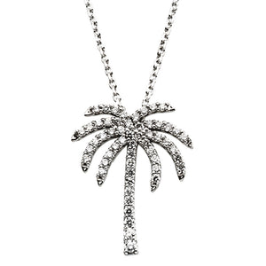 1/3 cttw Diamond Palm Tree Necklace in 14k White Gold - Black Bow Jewelry Company