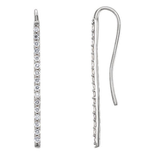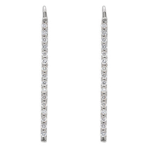 Change up your look with these eye-catching 14k white gold bar earrings featuring genuine white diamonds that are H-I in color, I1 in clarity. They are approximately 1.3mm in width by 23mm (9/10 inch) in length. The total diamond weight for the pair is 1/3 carat.
