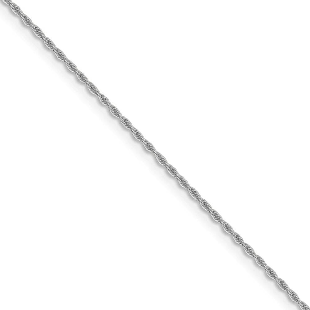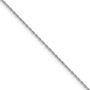 A classic rope chain features twisted links woven together in a spiral design that offers strength, integrity and elegance all in one. This one is made of polished 14k white gold, which is perfect for displaying lightweight gold charms or pendants. It closes with a lobster claw clasp and is 1.3mm in width by 20 inches in length. Made in Italy.