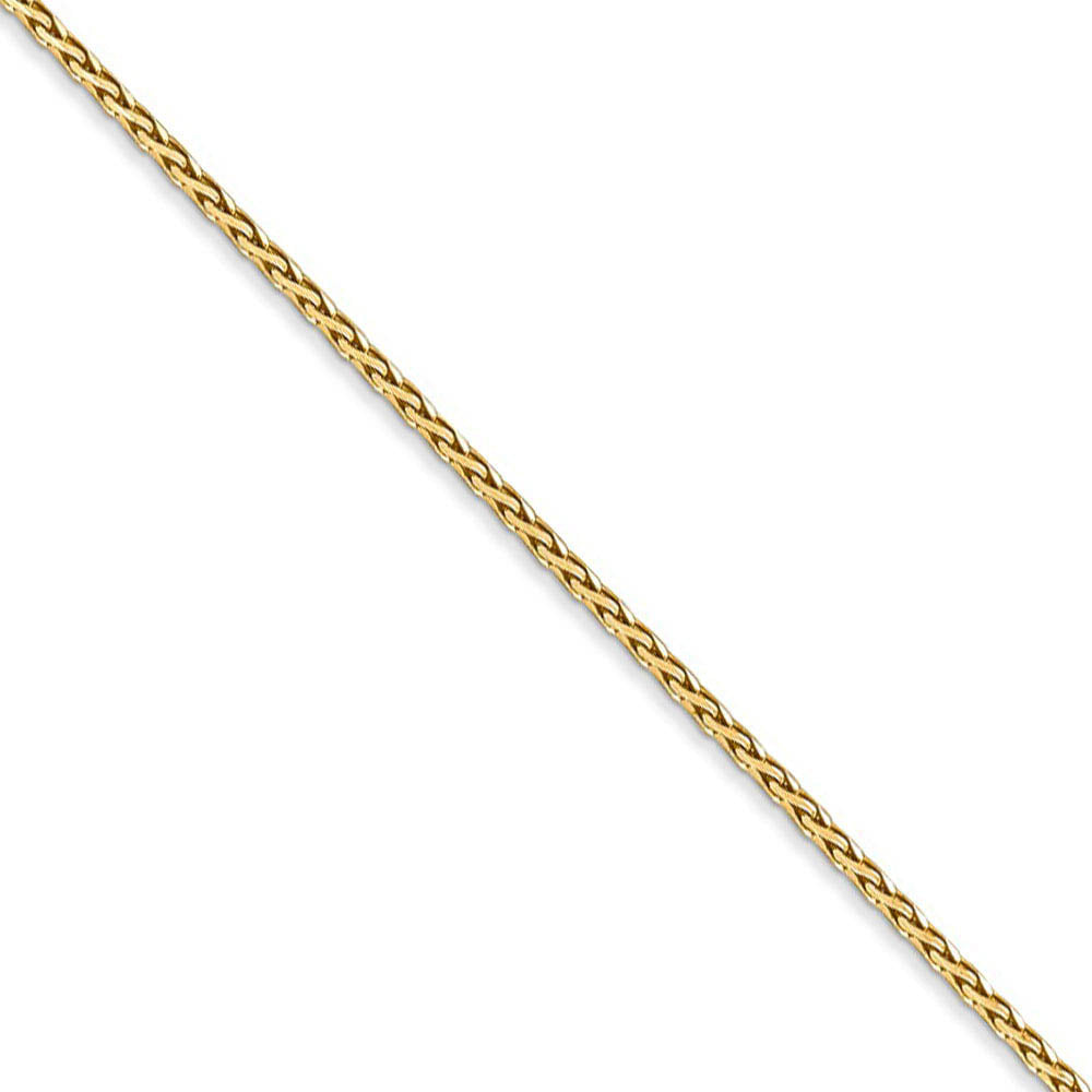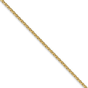 Interwoven solid links of 14k yellow gold form a distinctive braided design that will add elegance and beauty to your favorite charm or pendant. This 1.3mm wide 18-inch long wheat chain features a dazzling diamond-cut finish and closes securely with a lobster claw clasp.