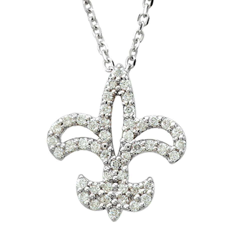 1/4 cttw Diamond Fleur-De-Lis Necklace in 14k White Gold - Black Bow Jewelry Company