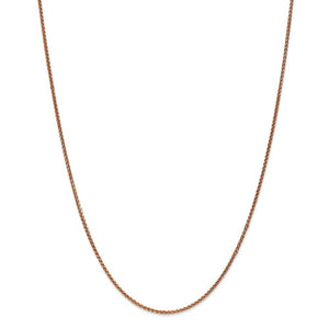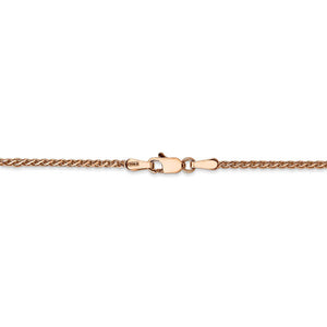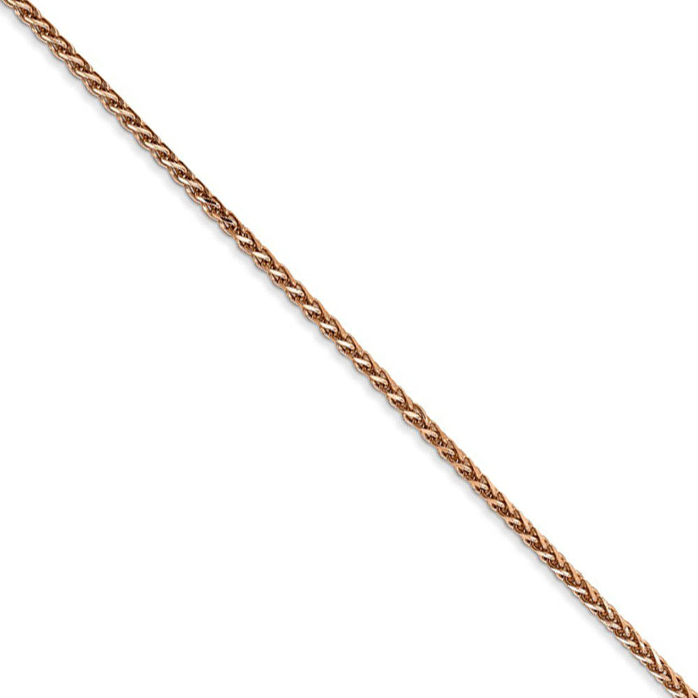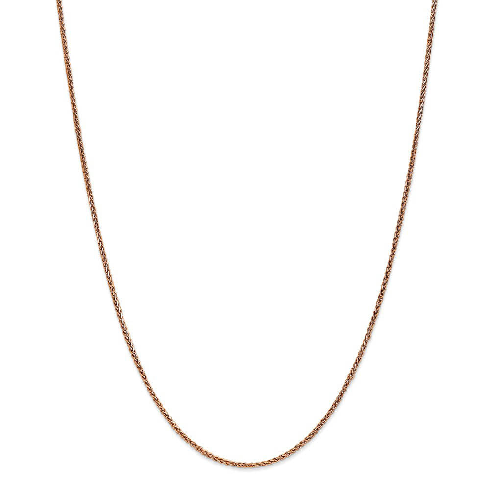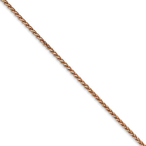 • Strands of 14k rose gold are braided and woven together to create a spectacular wheat pattern for this 1.4mm chain that closes with a lobster-claw clasp. It features a solid link construction with a sparkling diamond-cut finish. 18 inches in length.