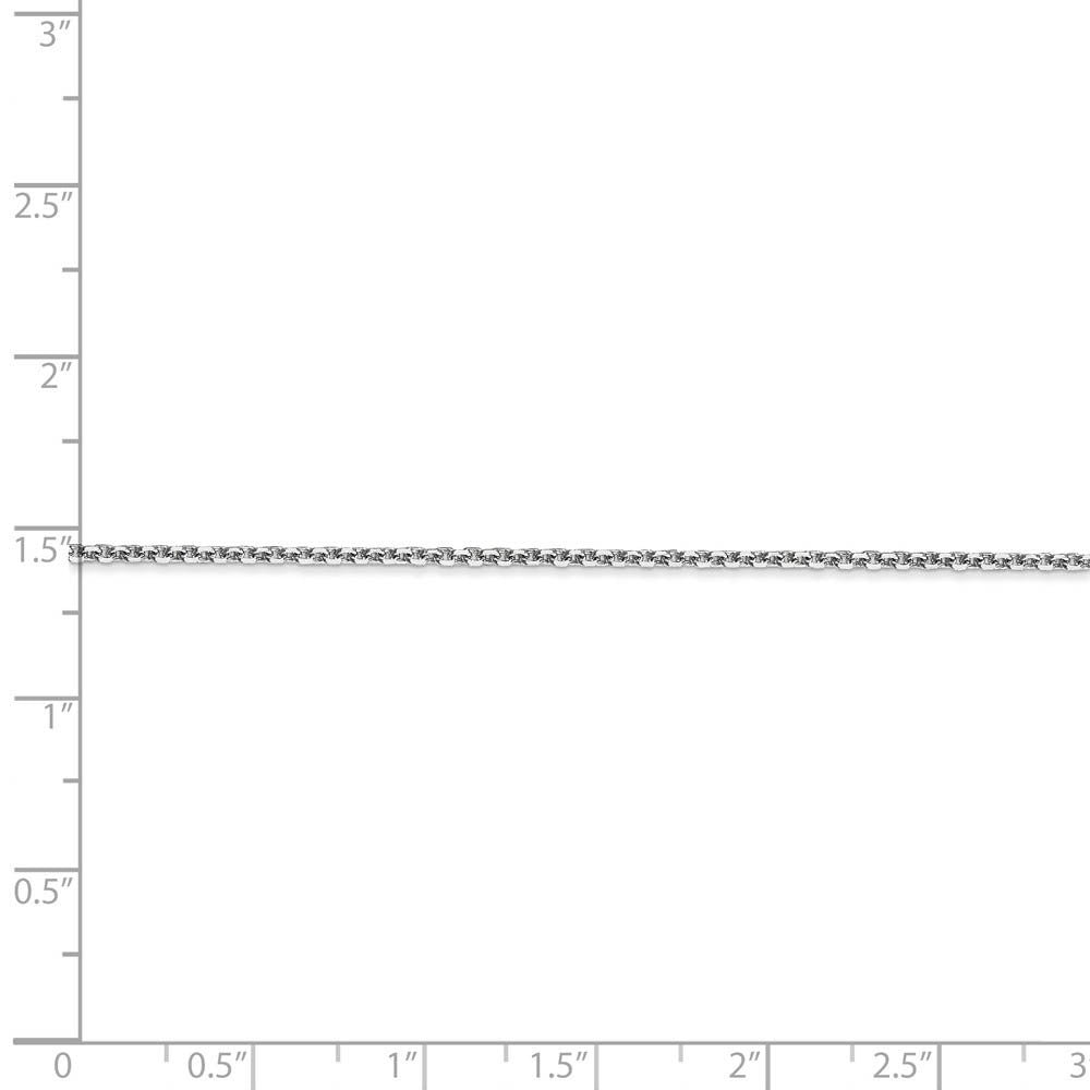 Oval links of rhodium-plated 14k white gold interlock with an alternating pattern to create a classic cable design that never goes out of style. This 1.4mm width, 9-inch long, solid link anklet has a sparling diamond-cut finish and closes with a lobster claw clasp.
