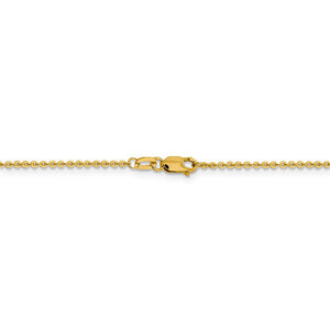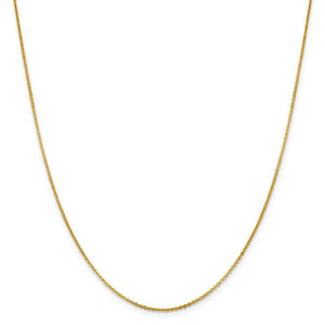 A traditional alternating pattern of flat oval links connect together to create a stylish cable chain made of 14k yellow gold. This polished necklace chain is 1.4mm in width by 24 inches in length and closes with an easy to use lobster claw clasp. Made in Italy.
