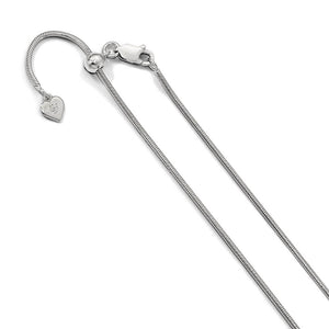 A smooth and flexible snake chain with its classic round design will show off your favorite pendant or charm to perfection. Fashioned from polished rhodium plated sterling silver, this delicate 1.4mm width necklace features a slide mechanism with a lobster clasp that adjusts to any length up to 22 inches. Made in Italy.