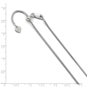 A smooth and flexible snake chain with its classic round design will show off your favorite pendant or charm to perfection. Fashioned from polished rhodium plated sterling silver, this delicate 1.4mm width necklace features a slide mechanism with a lobster clasp that adjusts to any length up to 30 inches. Made in Italy.