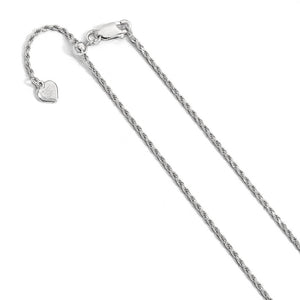 Spiraling rope chains made of rhodium plated sterling silver enhanced with diamond-cuts are extremely popular because they offer a classic design with maximum shine. Flexible and versatile, this 1.4mm width necklace chain fastens with a lobster claw clasp and is adjustable to any length up to 22 inches. Made in Italy.