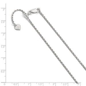 Spiraling rope chains made of rhodium plated sterling silver enhanced with diamond-cuts are extremely popular because they offer a classic design with maximum shine. Flexible and versatile, this 1.4mm width necklace chain fastens with a lobster claw clasp and is adjustable to any length up to 30 inches. Made in Italy.