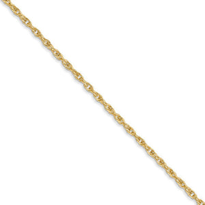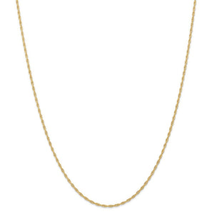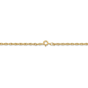 Classic appeal with a modern design, this solid-link cable rope chain created from polished 14k yellow gold is finished with a spring-ring clasp and perfect for displaying lightweight charms or pendants. This delicate necklace chain is 1.55mm in width by 24-inches in length. Made in the U.S.A.