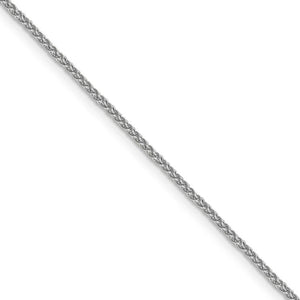 Interwoven solid links of 10k white gold form a distinctive braided design that will add elegance and beauty to your favorite charm or pendant. This delicate 1.5mm wide, 18 inch long wheat chain features a dazzling diamond-cut finish and closes securely with a lobster claw clasp.