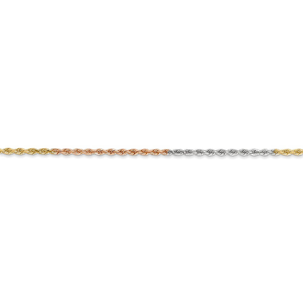 1.5mm 14k Tri-Color Gold D/C Solid Rope Chain Anklet or Bracelet - Black Bow Jewelry Company