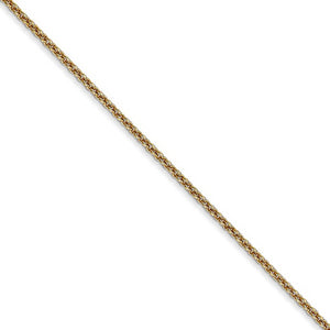 • A simple, alternating pattern of tiny round links join together to create a classic cable chain made of gleaming 14k yellow gold. The delicate supple design of this 1.5mm width, 18-inch long necklace closes with a lobster claw clasp.