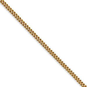 Fashioned from solid 14k yellow gold, this stunning Franco chain with its flexible and resilient design is the perfect choice for highlighting your new gold charm or pendant. Measuring 1.5mm in width, this polished chain closes securely with a lobster-claw clasp. 22 inches in length.