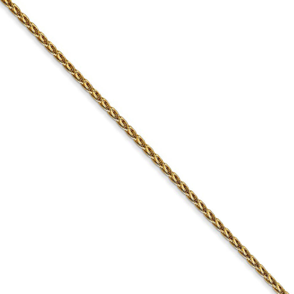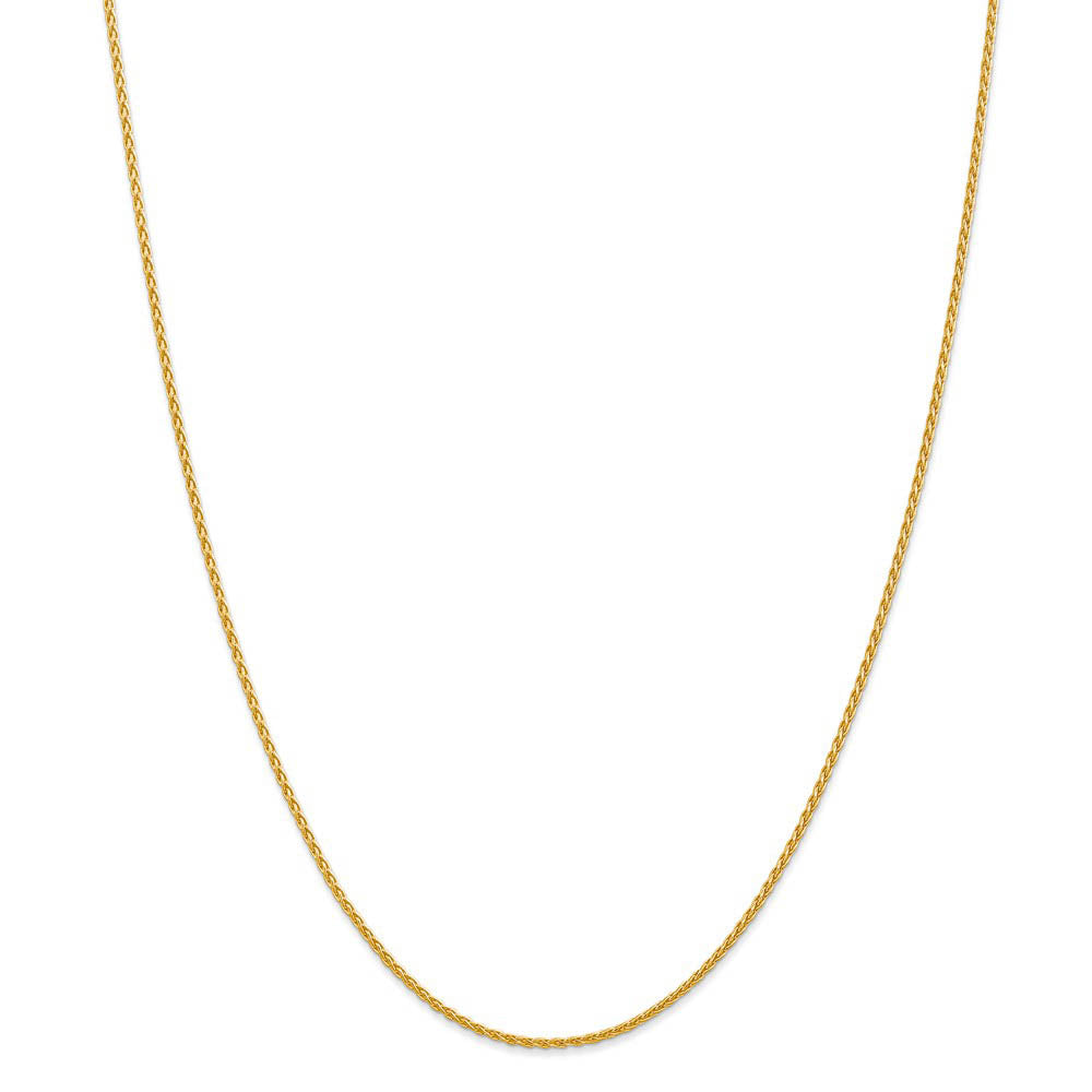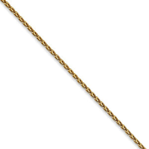 This beautiful chain intricately woven from 14k yellow gold features a solid link, Parisian wheat pattern with a smooth polished finish. Crafted in the USA, this 1.5mm width chain comes complete with a lobster-claw clasp for a reliable fit. 16 inches in length.