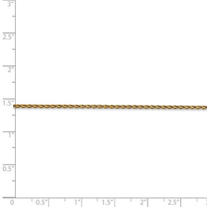 • This beautiful chain intricately woven from 14k yellow gold features a solid link, Parisian wheat pattern with a smooth polished finish. Crafted in the USA, this 1.5mm width chain comes complete with a lobster-claw clasp for a reliable fit. 18 inches in length.