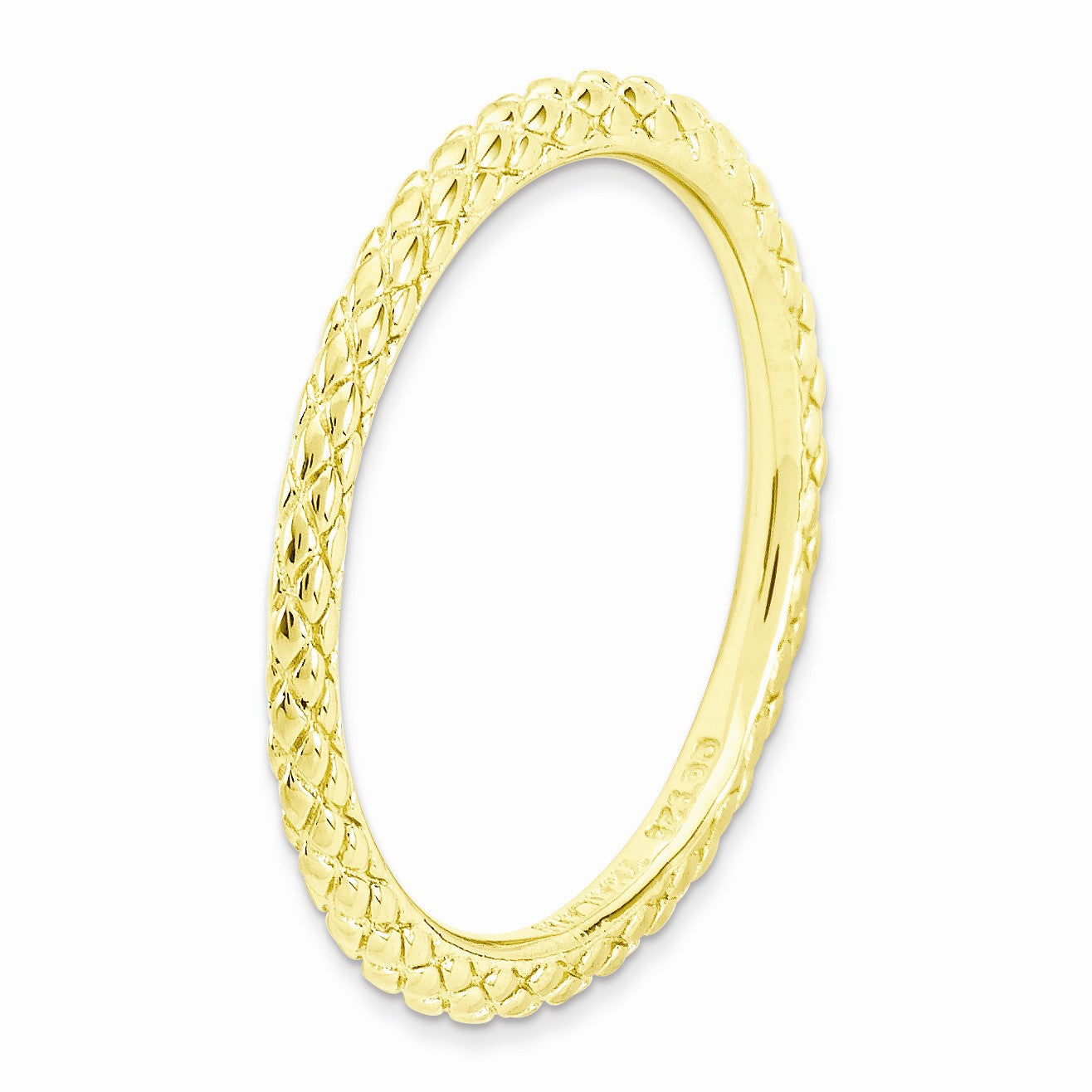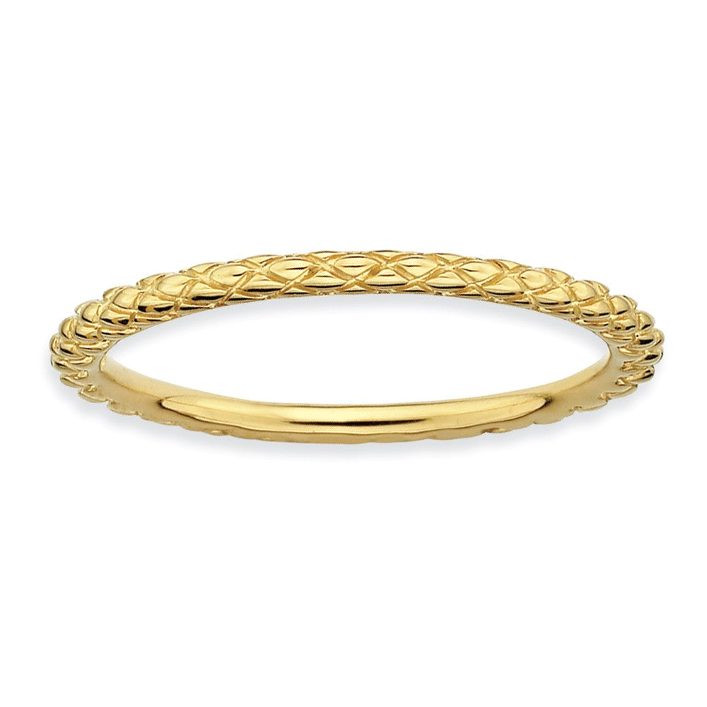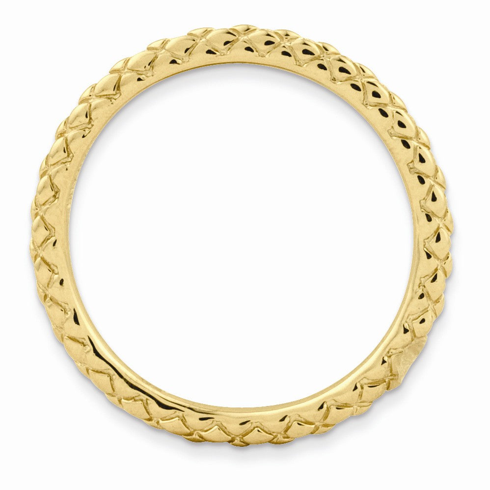 Make it simple and stylish with bands of different textures, finishes, widths and colors! This 14k yellow gold plated sterling silver band features a crisscross design with a high polished finish that measures 1. Mm wide. Guaranteed to fit together perfectly with all of the mix and match Stackable Expressions rings.