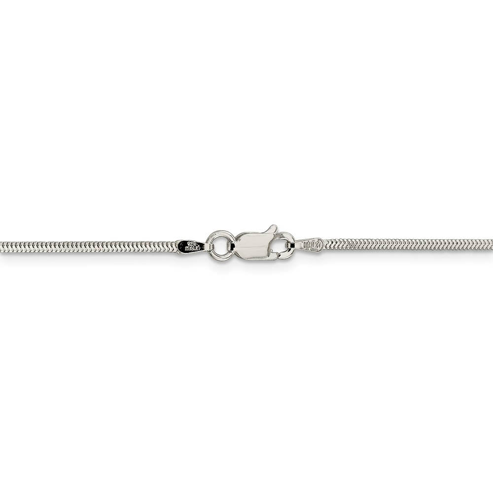 A sleek flat snake chain necklace fashioned from sterling features a solid link design that has been diamond-cut so it sparkles at every angle. It is 1.5mm in width by 16-inches in length and closes with lobster clasp. Made in Italy.