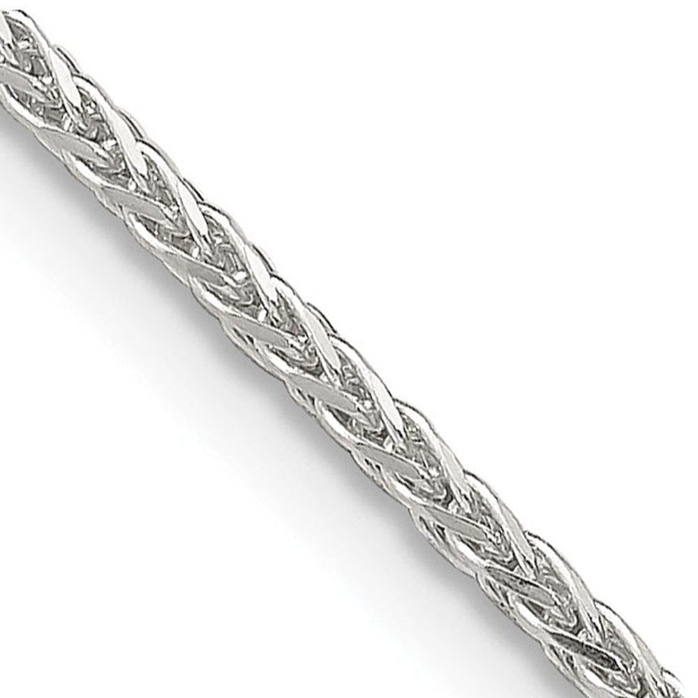 • Sterling silver links are plaited together to create a delicate spiga design for this 1.5mm width, 20-inch long chain necklace that closes with a lobster claw clasp. It features a solid link construction, a round profile and a sparkly diamond-cut finish. Made in Italy.