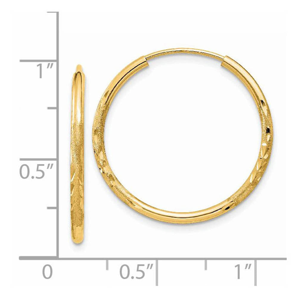 1.5mm x 25mm 14k Yellow Gold Satin Diamond-Cut Endless Hoop Earrings - Black Bow Jewelry Company