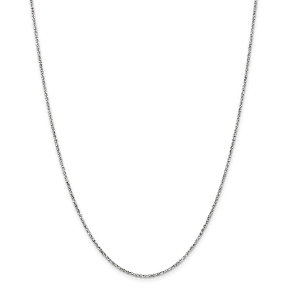 • A classic, alternating pattern of round open links join together to create a beautiful cable necklace made of gleaming rhodium-plated 14k white gold. The solid, supple design of this 1.6mm chain features an easy to use lobster-claw closure to keep it safely in place. 18 inches in length.
