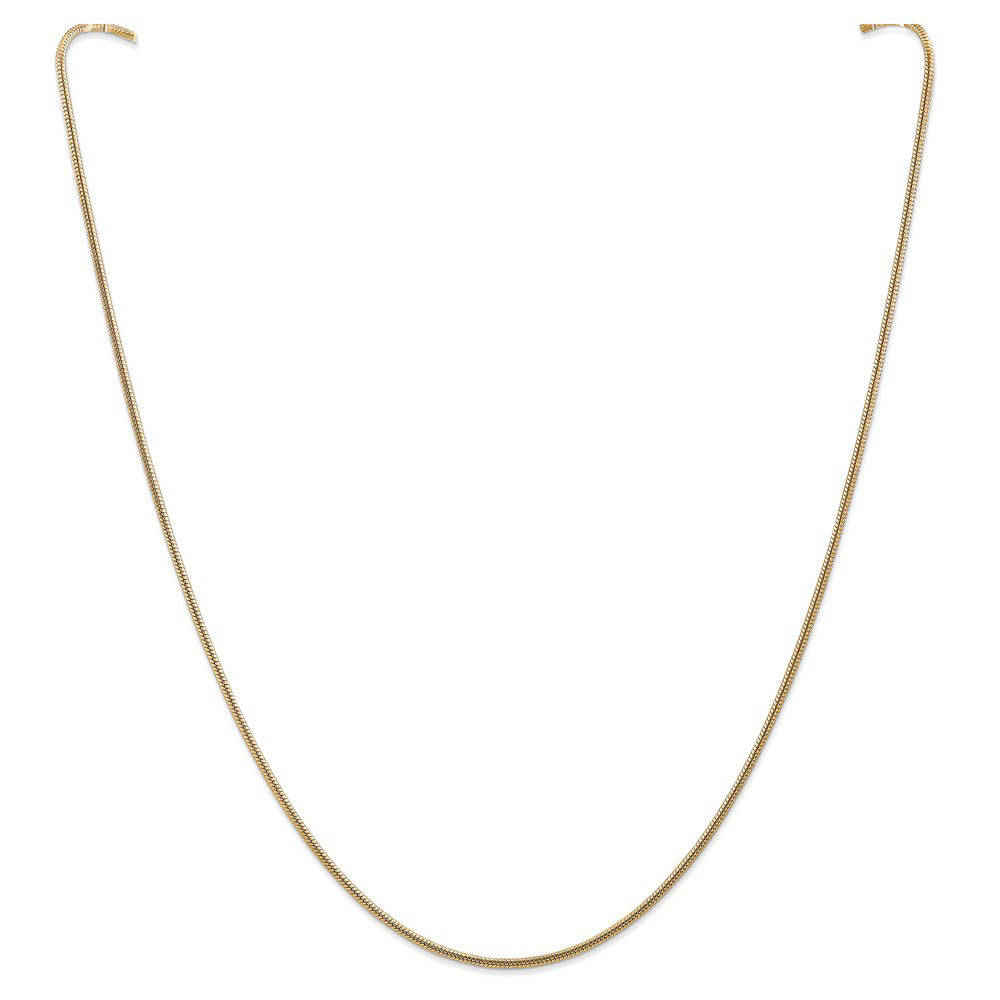 A smooth and flexible snake chain with its classic round design will show off your favorite pendant or charm to perfection. Fashioned from polished 14k yellow gold, this solid link necklace measures 1.6mm in width by 24-inches in length and is finished with a lobster-claw closure to ensure a safe fit.