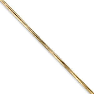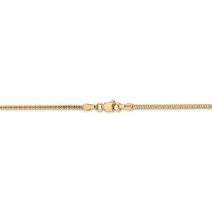 A smooth and flexible snake chain with its classic round design will show off your favorite pendant or charm to perfection. Fashioned from polished 14k yellow gold, this solid link necklace measures 1.6mm in width by 18-inches in length and is finished with a lobster-claw closure to ensure a safe fit.