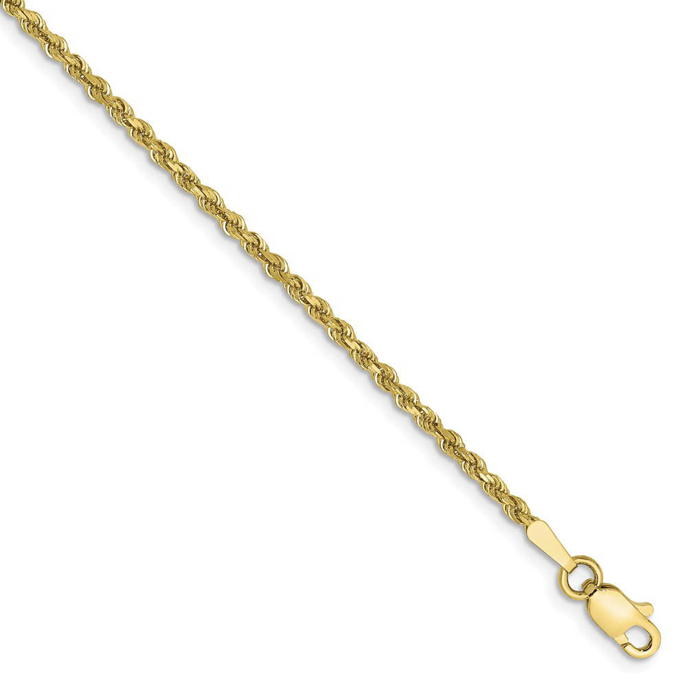 1.75mm, 10k Yellow Gold Diamond Cut Solid Rope Chain Bracelet