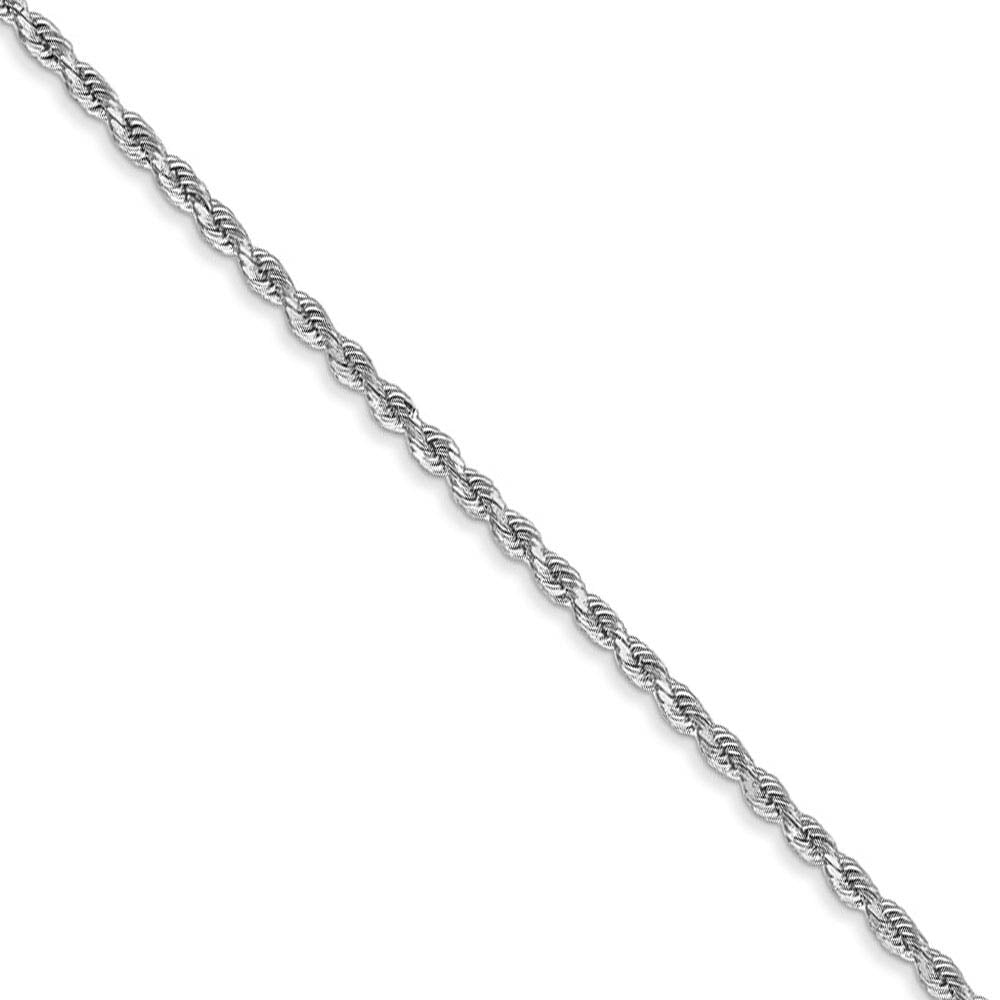 1.75mm 14k White Gold Solid Diamond Cut Rope Chain Necklace