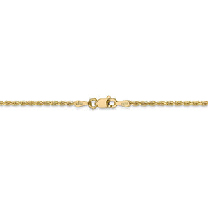 Spiraling rope chains made of 14k yellow gold enhanced with diamond-cuts are extremely popular because they offer a classic design with maximum shine. Flexible and strong, this 6-inch solid link bracelet chain is 1.75mm in width and fastens with a lobster claw clasp.