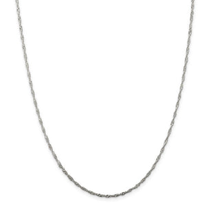 • Known for its unique twisted design this 1.75mm width, 24-inch long Singapore chain features a solid link construction with a high polished finish that catches the light with every movement. It is fashioned from sterling silver and closes with a lobster-claw clasp.