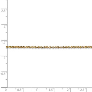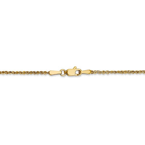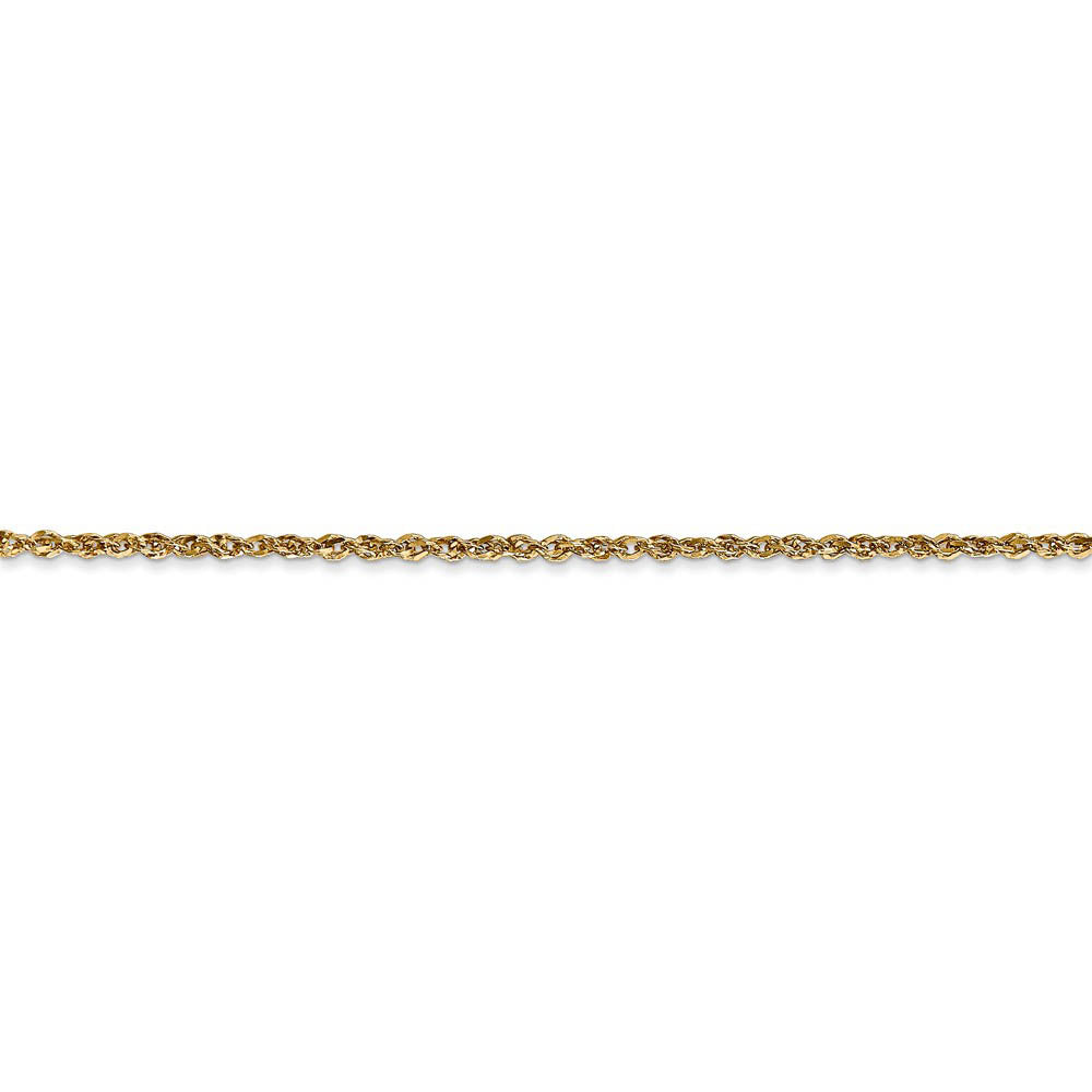 Classic appeal with a modern design, this elegant ropa chain offers strength and dependability with its variation of the popular rope pattern. Created from 14k yellow gold with a bright polished finish, it measures 1.7mm in width and closes with a lobster clasp for a reliable fit. 9 inches in length.