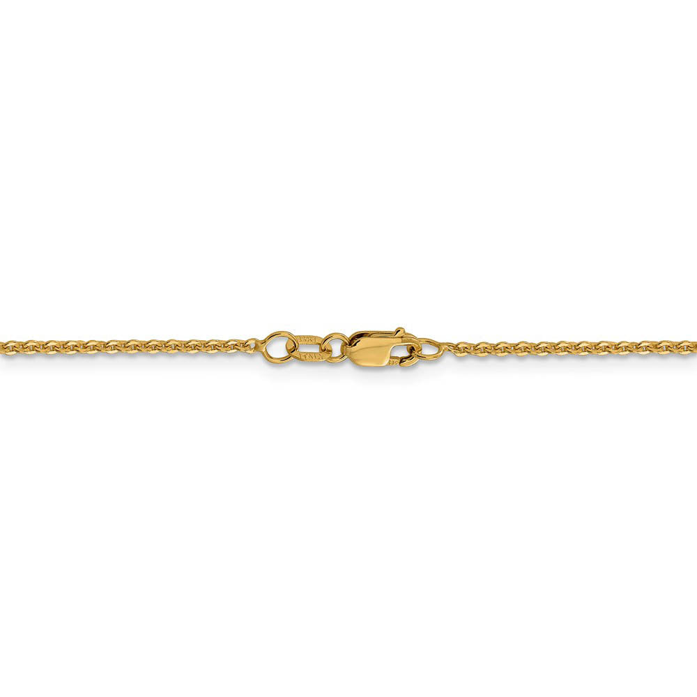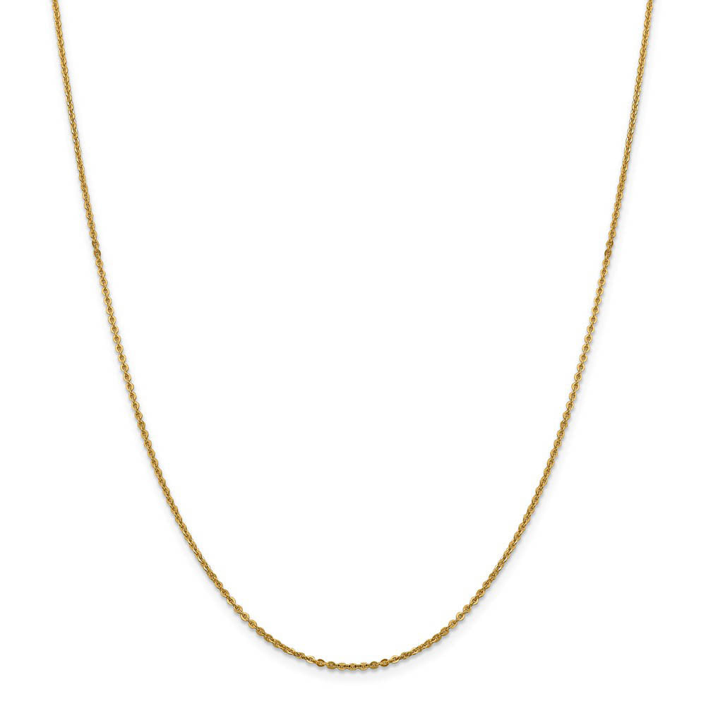 A traditional alternating pattern of flat oval links connect together to create a stylish cable chain made of 14k yellow gold. This polished necklace chain is 1.7mm in width by 24 inches in length and closes with an easy to use lobster claw clasp. Made in Italy.
