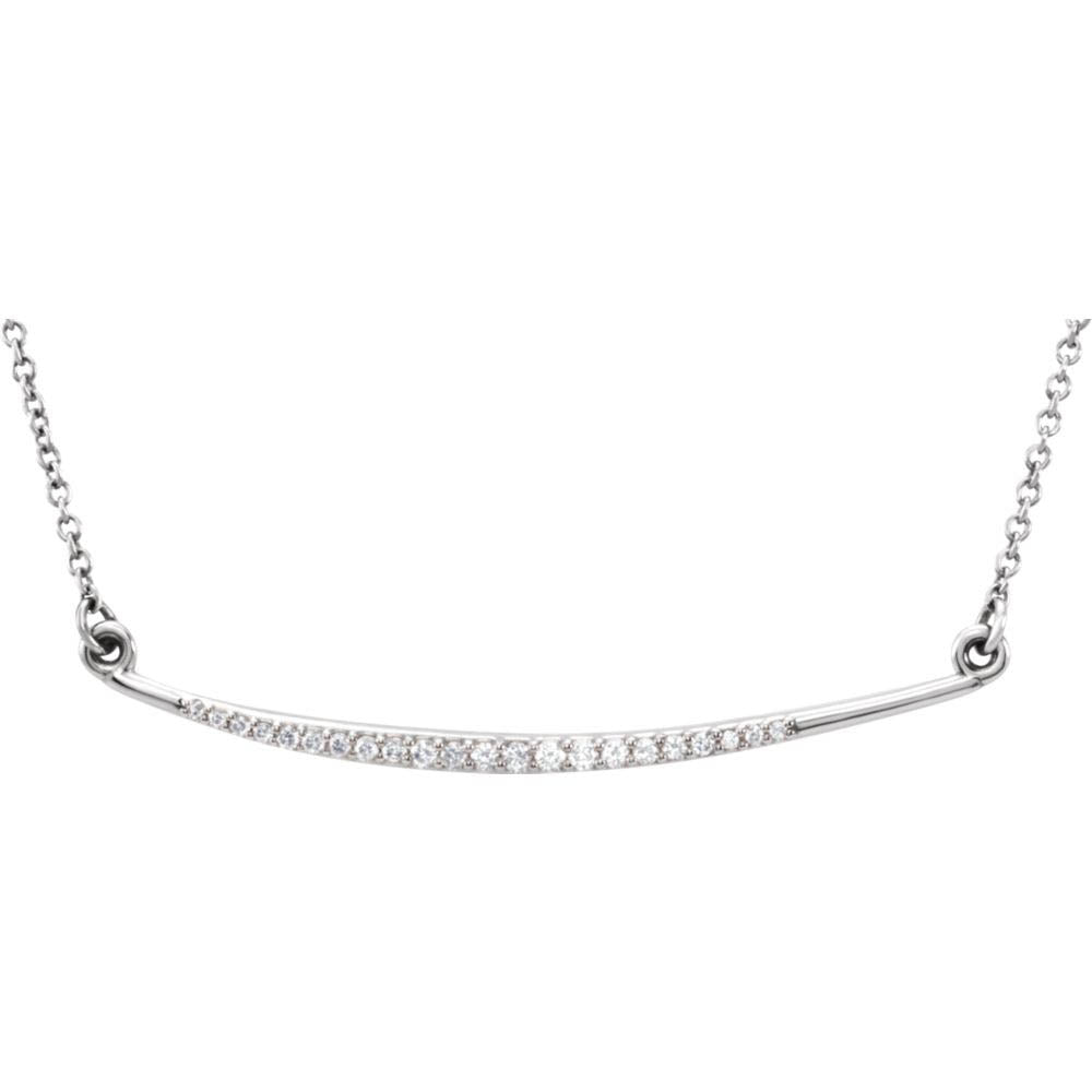1/8 Ctw Diamond Curved Bar Necklace in 14k White Gold, 16 Inch