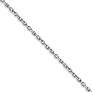 • Round open links of rhodium-plated 14k white gold interlock to form a beautiful cable chain that sparkles and shines in the light thanks to the diamond-cut finish. The solid link construction of this 1.8mm width necklace is ideal for your favorite charm or pendant and the lobster-claw clasp will keep it securely fastened. 22 inches in length.