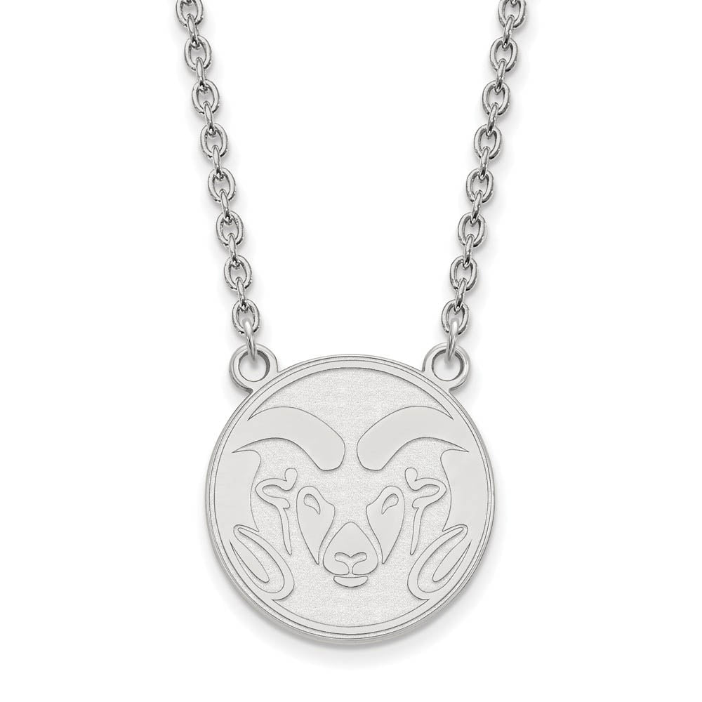 If you are a fan of Colorado State University and the Rams then you need to show your school spirit with this Colorado State University necklace. We are a certified retailer and this authentic item is officially licensed. It is crafted from 10k White Gold and crafted by LogoArt in the USA. 18 inches in length. This item is not currently in-stock. Once you place your order, please allow us 5 to 7 business days to make it for you.