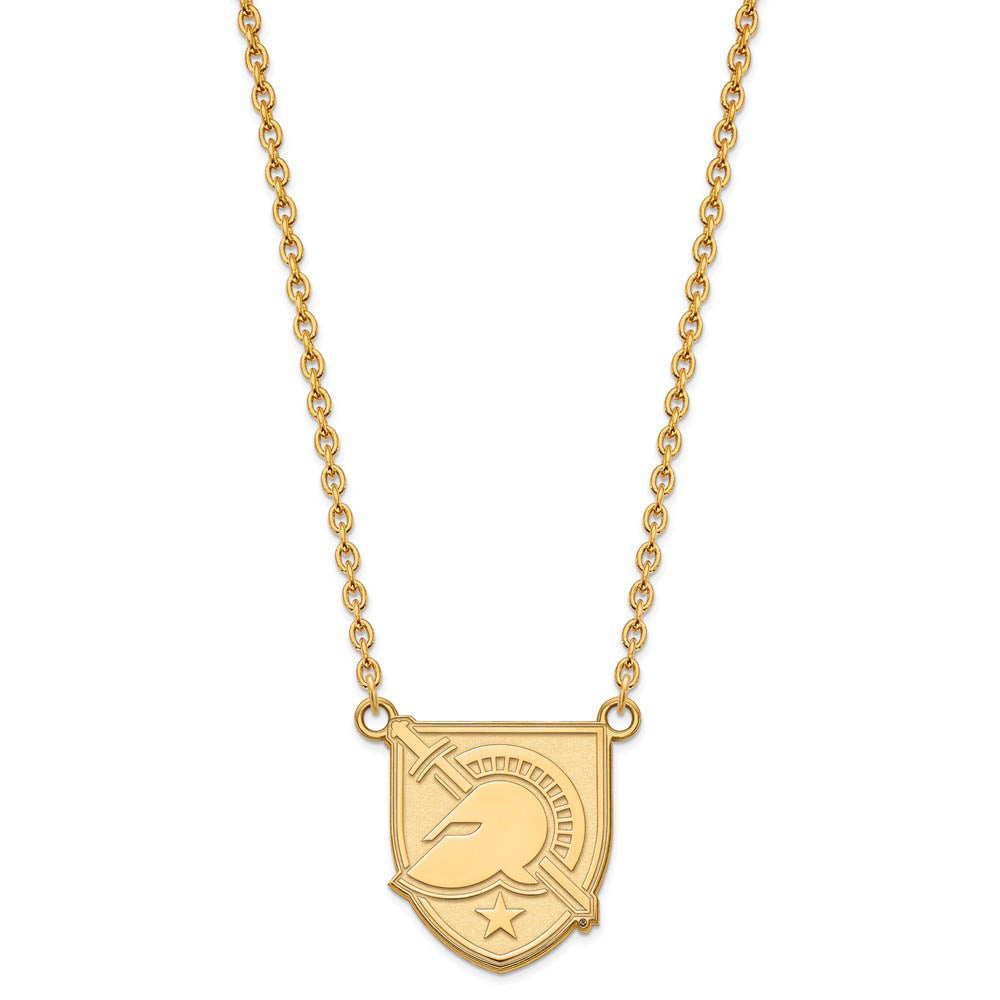 If you are a fan of U.S. Military Academy and the Black Knights then you need to show your school spirit with this U.S. Military Academy necklace. We are a certified retailer and this authentic item is officially licensed. It is crafted from 10k Yellow Gold and crafted by LogoArt in the USA. 18 inches in length. This item is not currently in-stock. Once you place your order, please allow us 5 to 7 business days to make it for you.