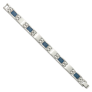 10mm Brushed Stainless Steel & Blue Carbon Fiber Link Bracelet, 8.5 In