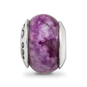 13mm Purple Magnesite Stone & Sterling Silver Bead Charm, 13mm