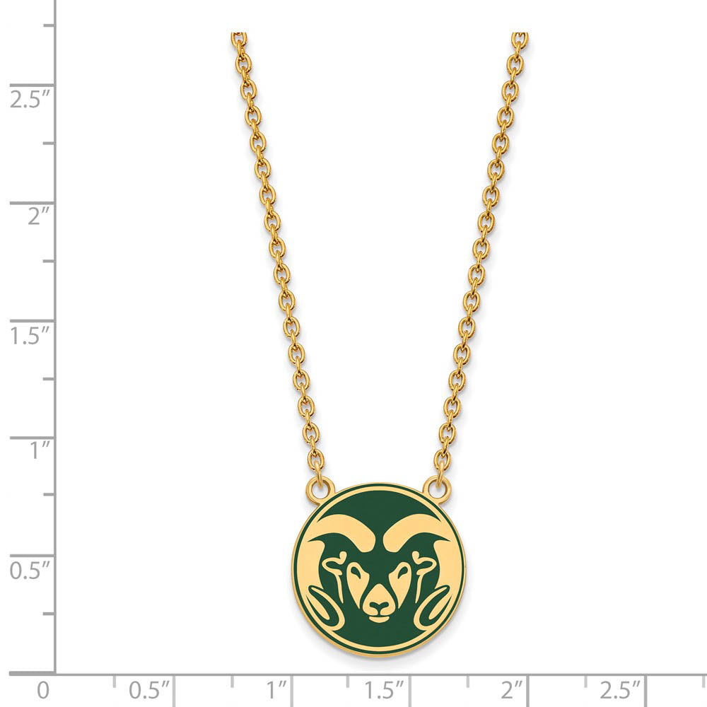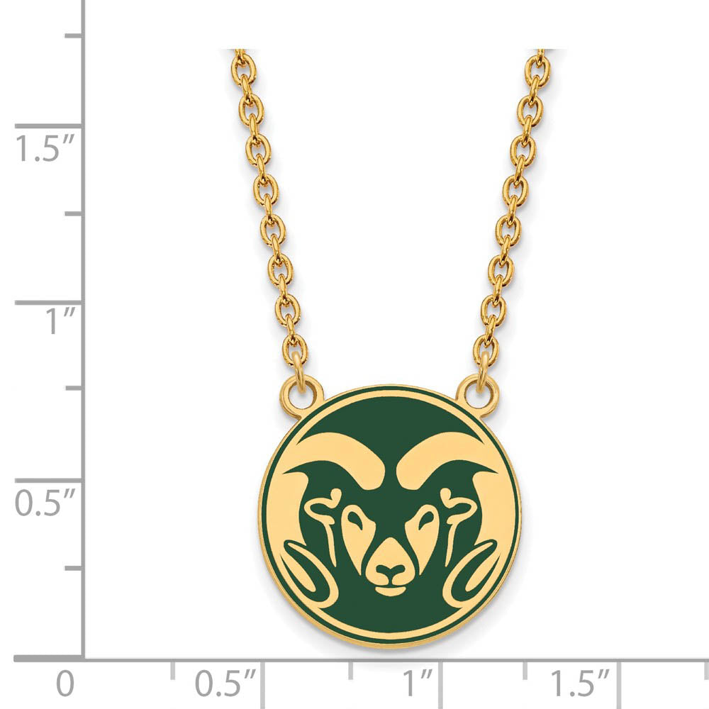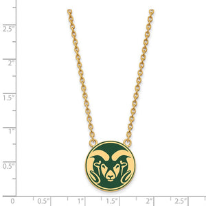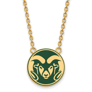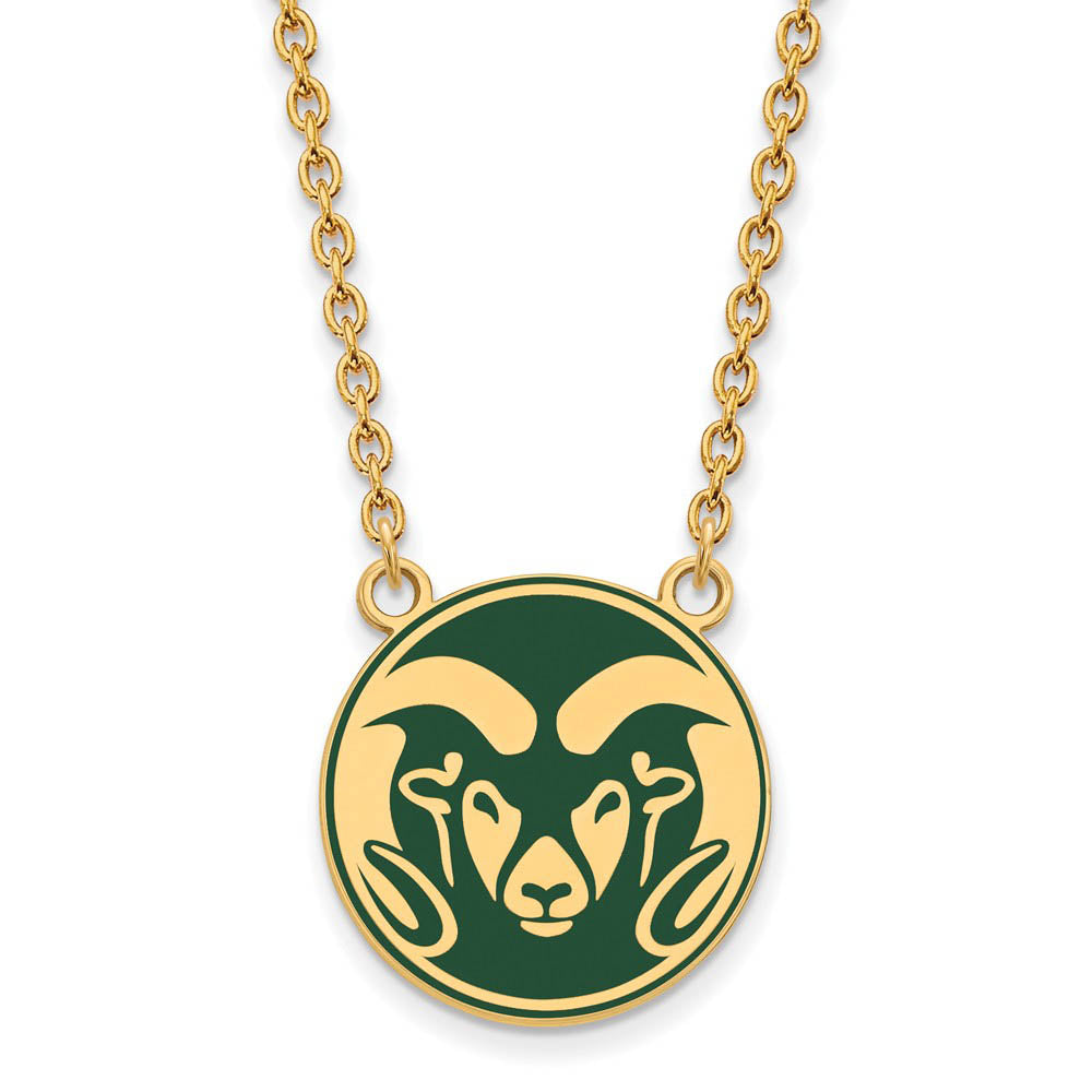 If you are a fan of Colorado State University and the Rams then you need to show your school spirit with this Colorado State University necklace. We are a certified retailer and this authentic item is officially licensed. It is crafted from 14k yellow gold plated sterling silver and crafted by LogoArt in the USA. 18 inches in length. This item is not currently in-stock. Once you place your order, please allow us 5 to 7 business days to make it for you.