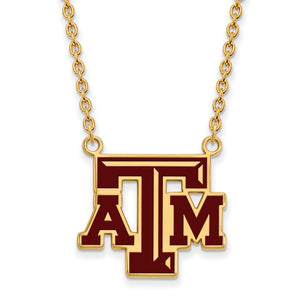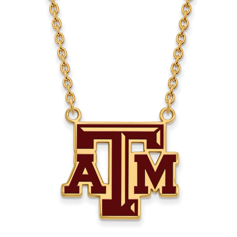 14k Gold Plated Silver Texas A&M U Lg Enamel Pendant Necklace