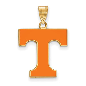 14k Gold Plated Silver U. of Tennessee Large Enamel 'T' Pendant