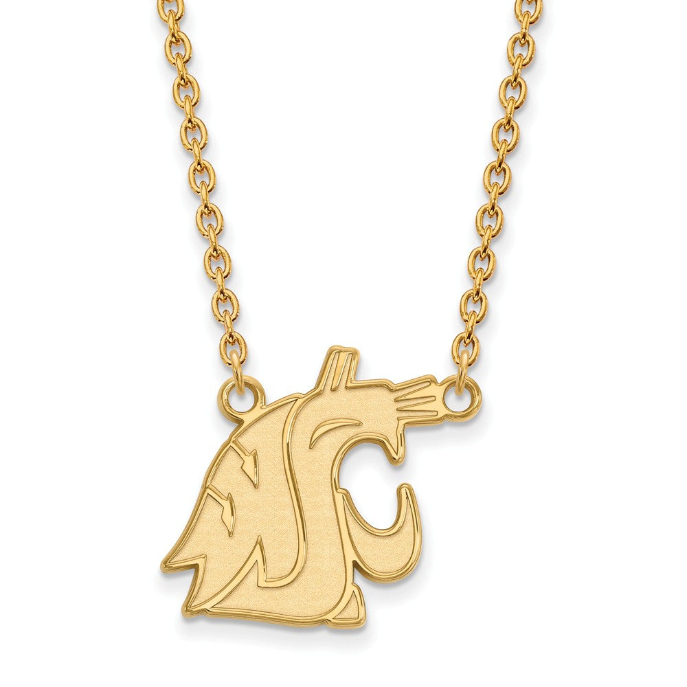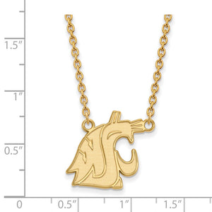If you are a fan of Washington State University and the Cougars then you need to show your school spirit with this Washington State University necklace. We are a certified retailer and this authentic item is officially licensed. It is crafted from 14k yellow gold plated sterling silver and crafted by LogoArt in the USA. 18 inches in length. This item is not currently in-stock. Once you place your order, please allow us 5 to 7 business days to make it for you.