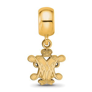 Show your school spirit with this College of William & Mary bead charm. It is crafted from 14k yellow gold plated sterling silver and measures 24 mm in length. We are a certified Collegiate jewelry retailer and this authentic item is officially licensed. These made in the USA bead charms are compatible with and will fit most major brand, 3mm width, bead style bracelets and necklaces.