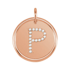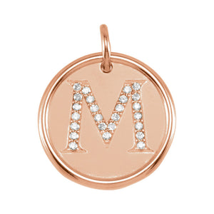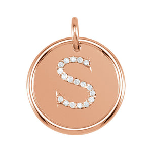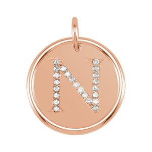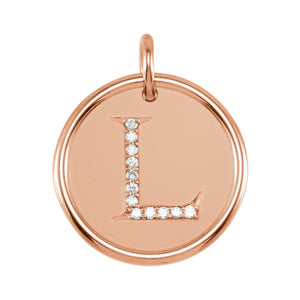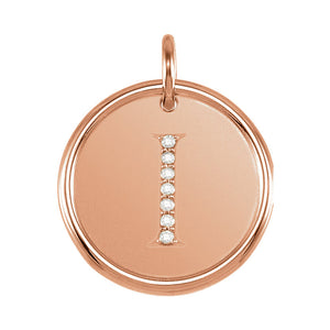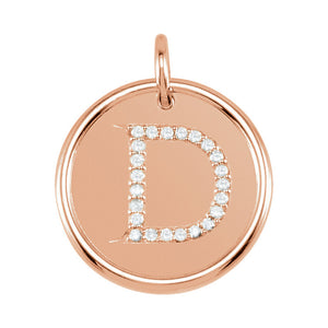 14k Rose Gold and Diamond Initial A-Z Disc Pendant, 17mm (5/8 inch)