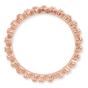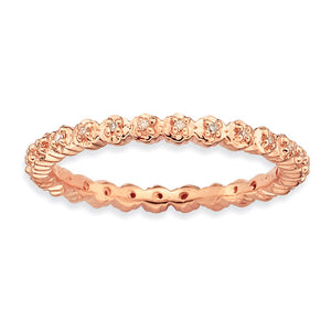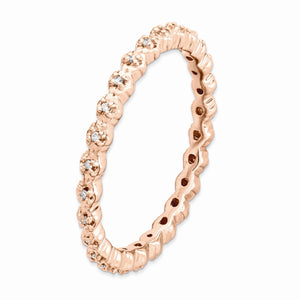Adorn your hands with the sparkle of diamonds! Wrapped all the way around this 2.5mm sterling silver band plated with 14k rose gold is round, I3 clarity, H-I color diamonds. A full assortment of Stackable Expressions rings guaranteed to fit perfectly together is available in wide range of textures, finishes, widths and colors.