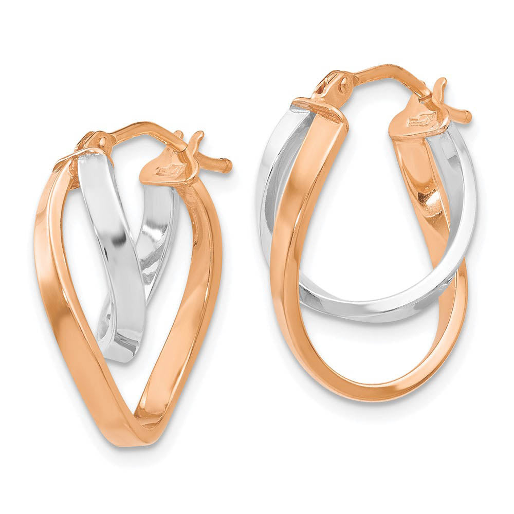14k Rose & White Gold Double Freeform Hoop Earrings, 17mm (5/8 Inch)