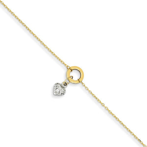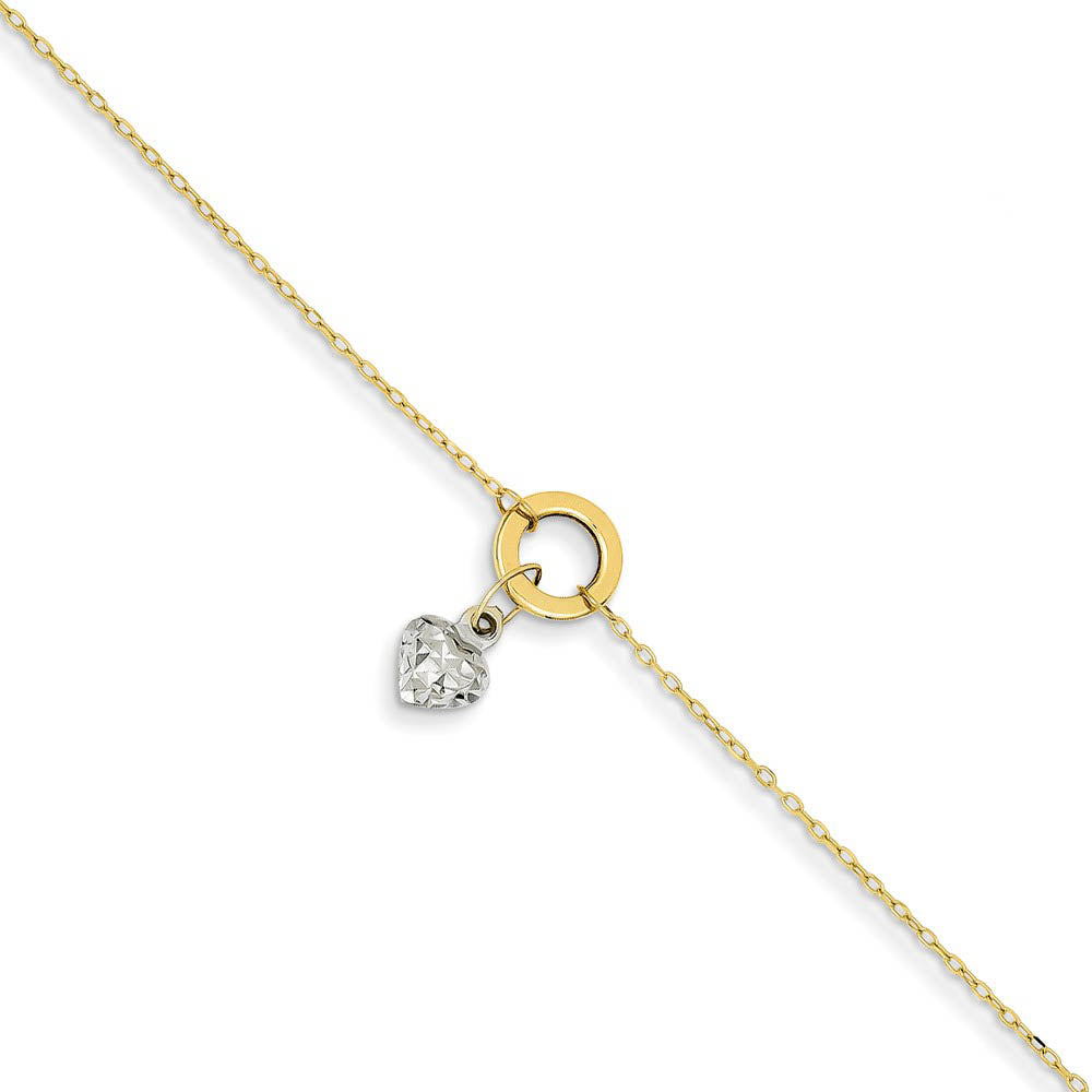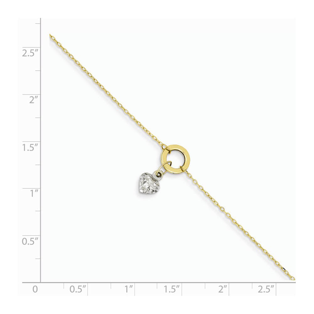 14k Two-Tone Adjustable Gold Circle And Puffed Heart Anklet, 9 Inch